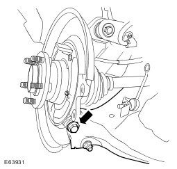 9. Disconnect the parking brake cable from the wheel knuckle.