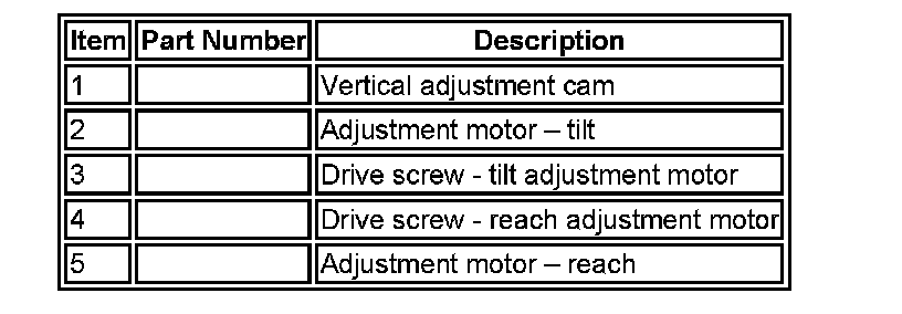 The steering column features fully electrical adjustment for tilt and reach. Steering wheel position is controlled by the CJB (central junction box).