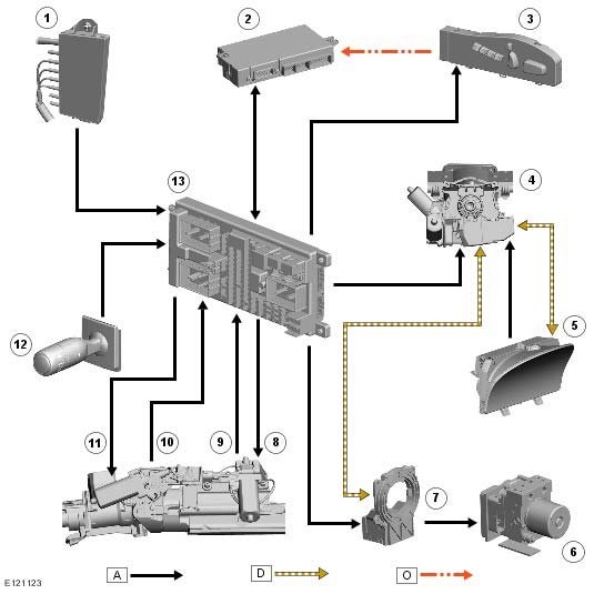 The motors used on the steering column have Hall effect sensors. These allow the CJB (central junction box) to calculate and adjust the position of the column when the seat memory store function is used and applies this setting to the applicable ignition key.