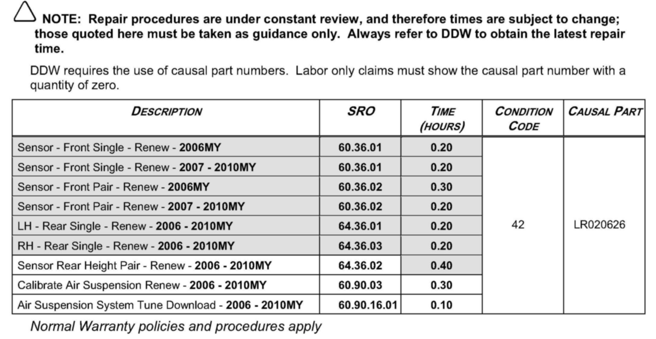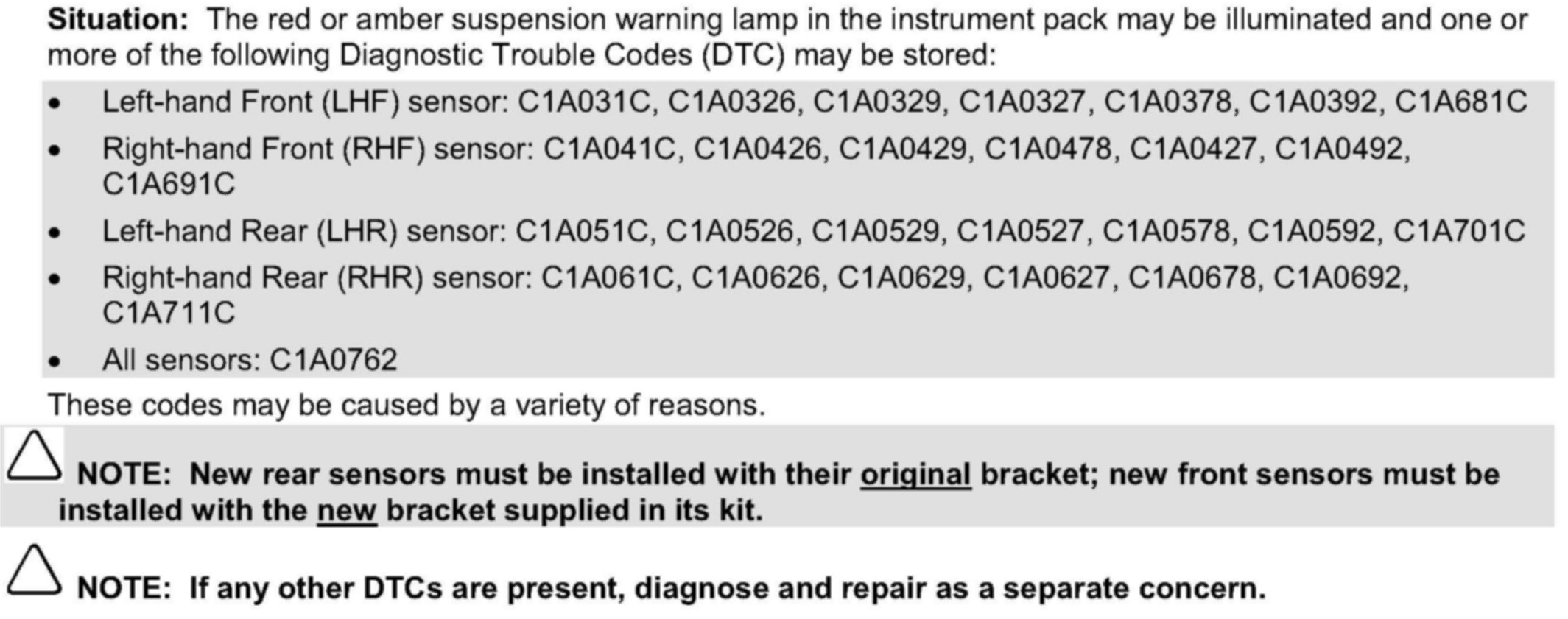 Air Suspension System Height Sensor Procedure Change