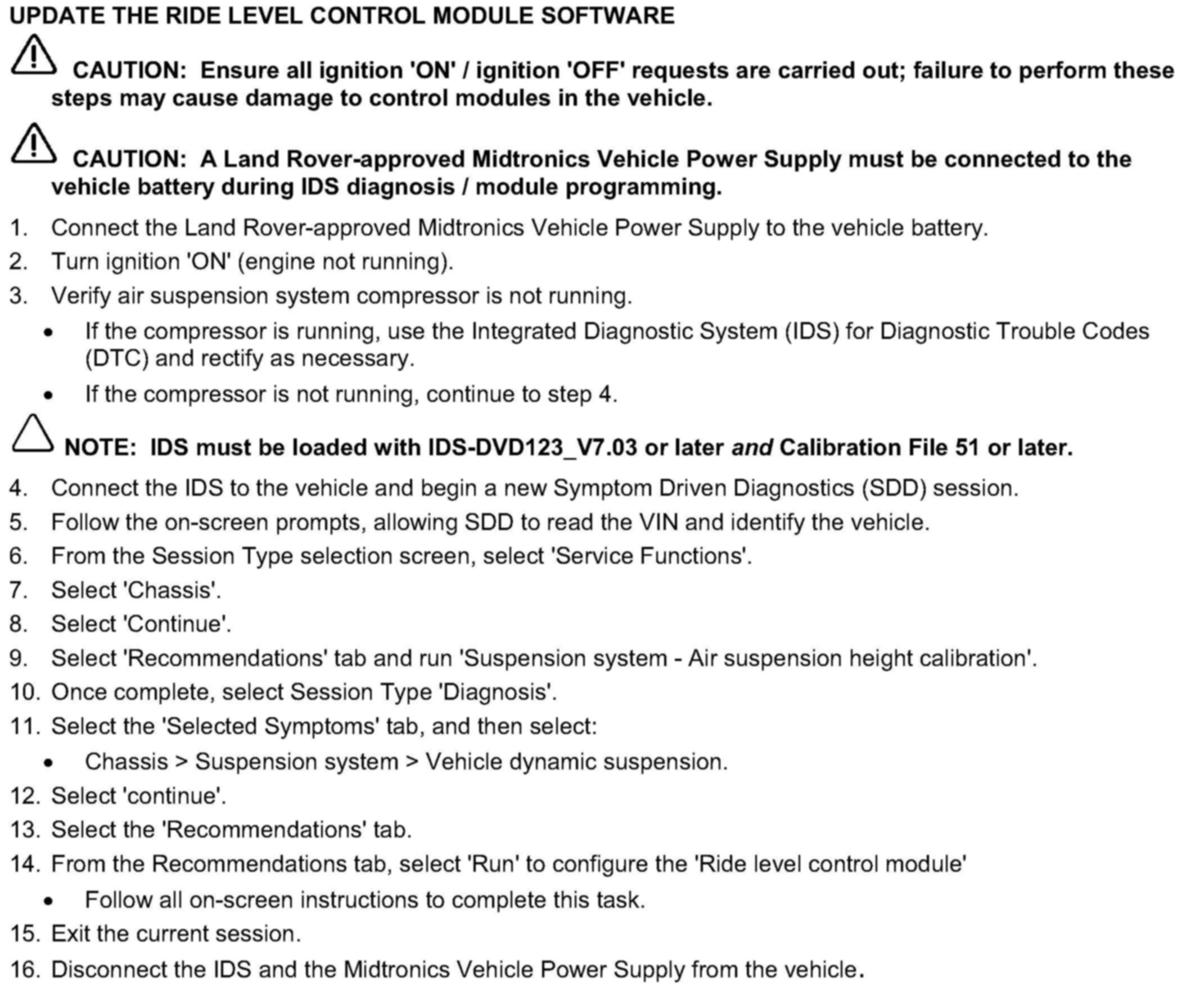 Update The Ride Level Control Module Software