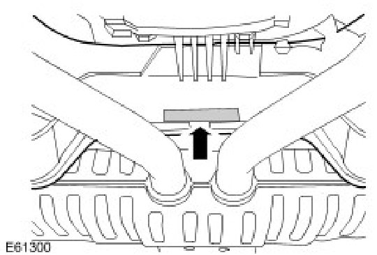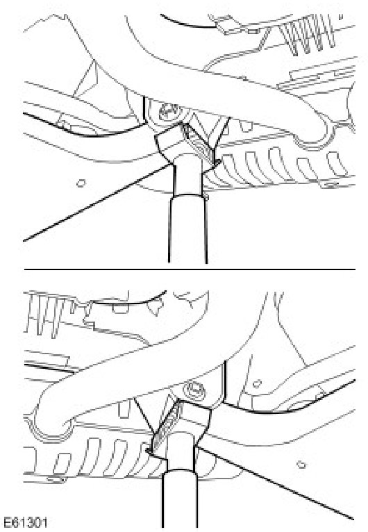 Position the lifting pad of the hydraulic jack under the centre of the rear sub-frame, rear cross member as shown.