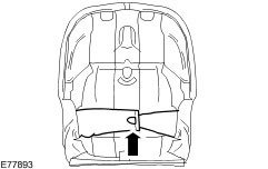 ^ Release the front seat backrest cover lower trim panel from the 2 clips.