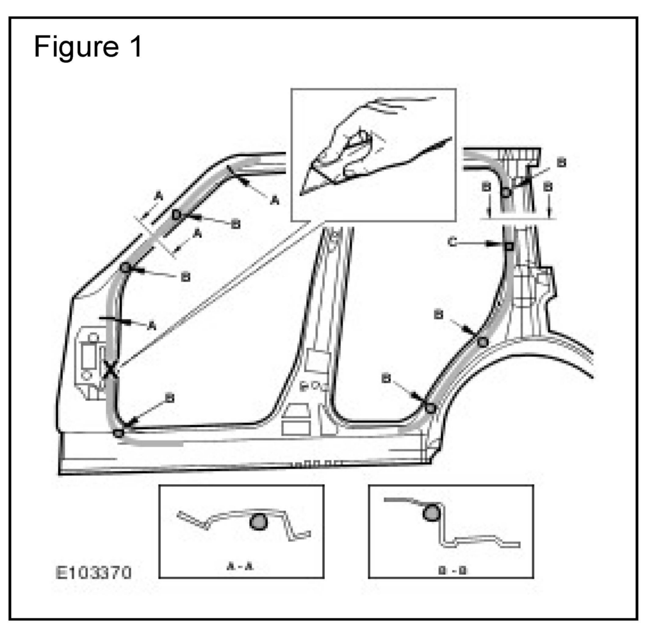 Water may enter the cabin area in one or more of the following scenarios: Through the headliner in the proximity of the driver's or front passenger's head, possibly dripping onto the top of the instrument panel. Behind the A-pillar trim, through the fascia and possibly into the front footwell. Removing the fascia end closing panel, water ingress in this area can be identified by rust-colored marks on the instrument panel reinforcement. Through the headliner around the rear of the roof opening panel. Into the left and right-hand-side rear footwell. Water ingress from the above may be caused by poorly routed / blocked / kinked / twisted front roof opening panel drain tubes or a badly fitted front or rear door water shedder.
