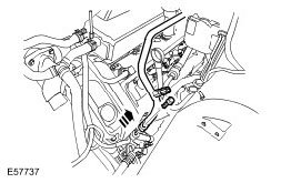 ^ Position the coolant hose assembly aside for access.