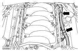^ Disconnect the 2 heater coolant hoses.