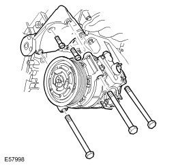 16. NOTE: 1 A/C compressor bolt will remain captive until the mounting bracket is removed.