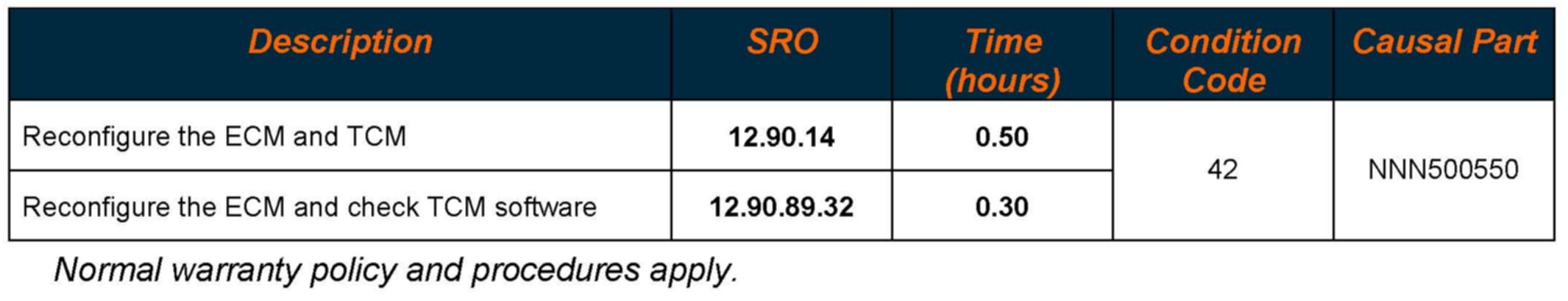 In the event of a customer concern of the above, refer to the Repair Procedure outlined below to update the Engine Control Module (ECM) software, check the Transmission Control Module (TCM) software, and if necessary update the TCM software.