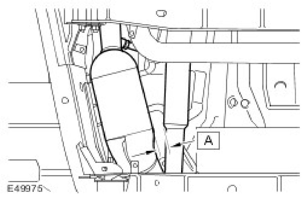 CAUTION: Make sure there is a clearance (A) of 25 mm to 30 mm between the closest points of the LH catalytic converter and the front driveshaft.