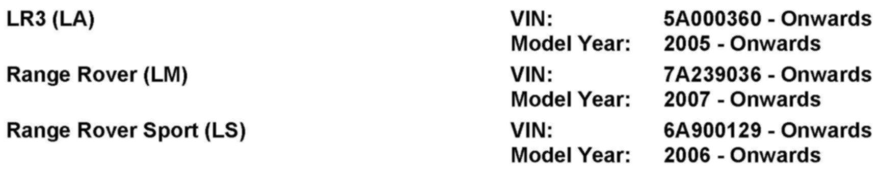 AFFECTED VEHICLE RANGE