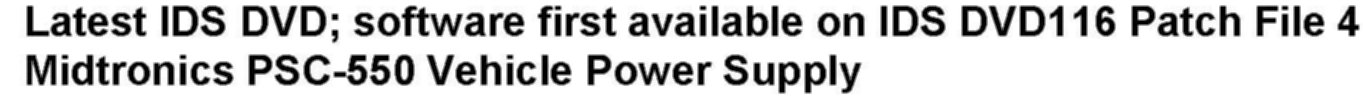 A Midtronics PSC-550 Vehicle Power Supply must be connected to the vehicle battery during IDS diagnosis / module programming.