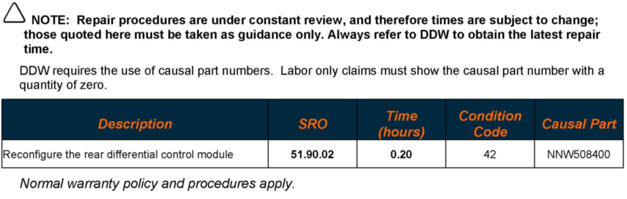 In the event of a customer concern of the above, refer to the Repair Procedure outlined below to reconfigure the rear differential control module.