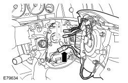 3. Release the 2 clips from the driver air bag module using a rod at least 50 mm (2 inches.) long and not exceeding 3 mm (1/8 inch.) diameter. Install the rod through each access hole in the steering wheel control switches at right angles to the steering column. Locate the secondary hole and carefully push on the rod until the clip is released.