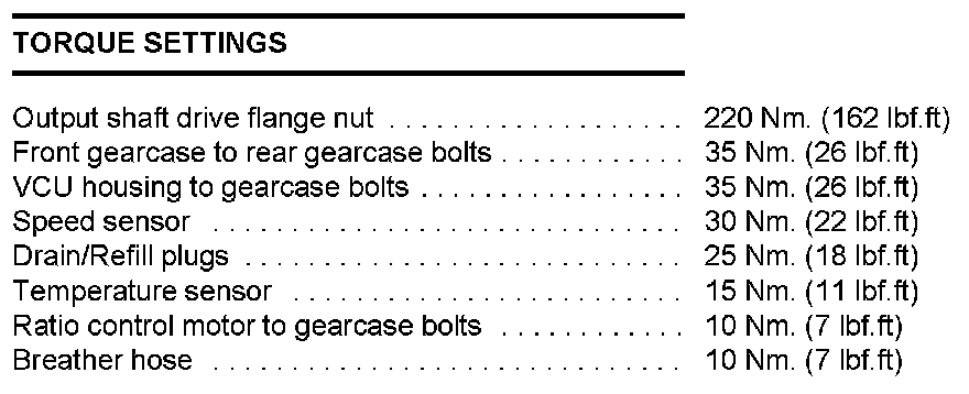 Torque Specifications