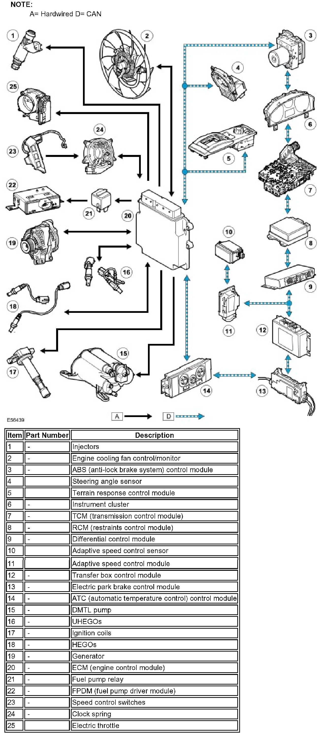 The V8 4.2 Liter supercharged engine is controlled by an ECM (engine control module) manufactured by DENSO. The Engine Management System (EMS) controls the following: