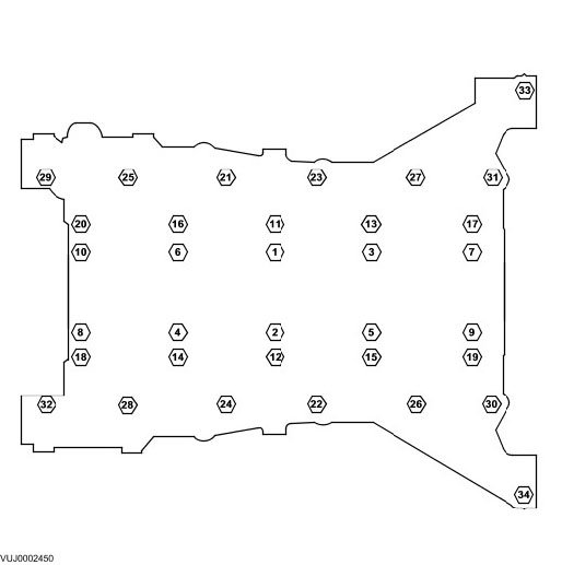 Stage 7: Bolts 21 to 32, tighten to 20 Nm (15 ft. lbs.), then a further 90°.