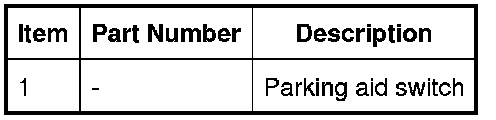 The switch is a non-latching push switch which allows the driver to select the parking aid system on or off. When pressed, the switch momentarily connects a ground to the parking aid module. The LED indicates when the parking aid system is active. The LED is controlled by the parking aid module.