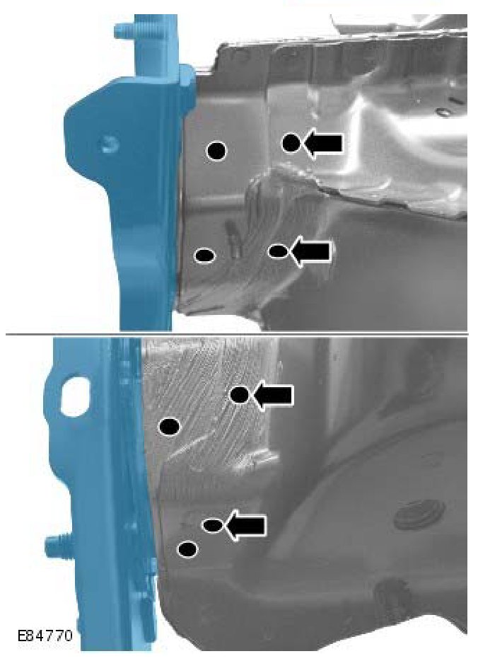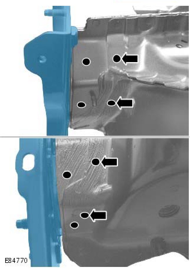 - Due to the combined thickness of the panels, it is recommended that spot welds are replaced with MIG plug welds in this repair.