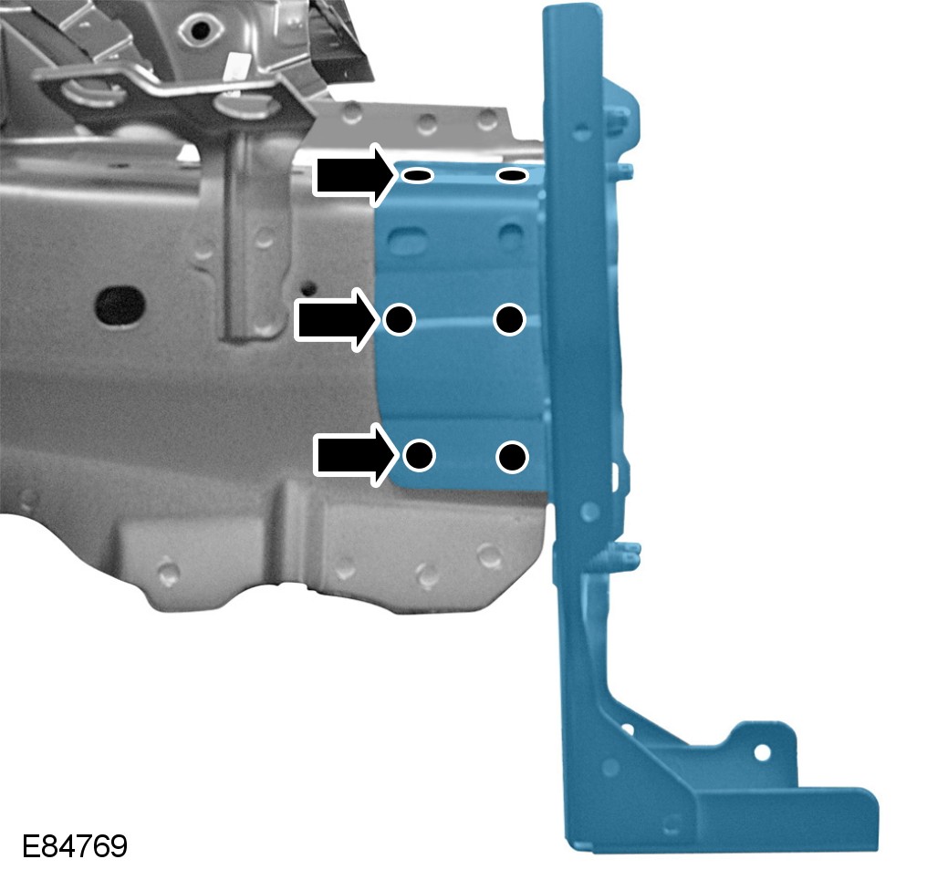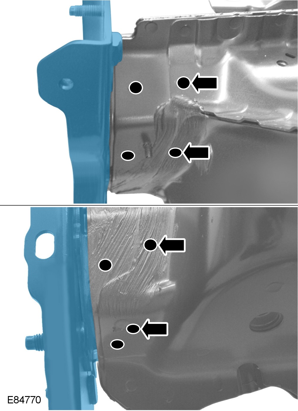 Due to the combined thickness of the panels, it is recommended that spot welds are replaced with MIG plug welds in this repair.