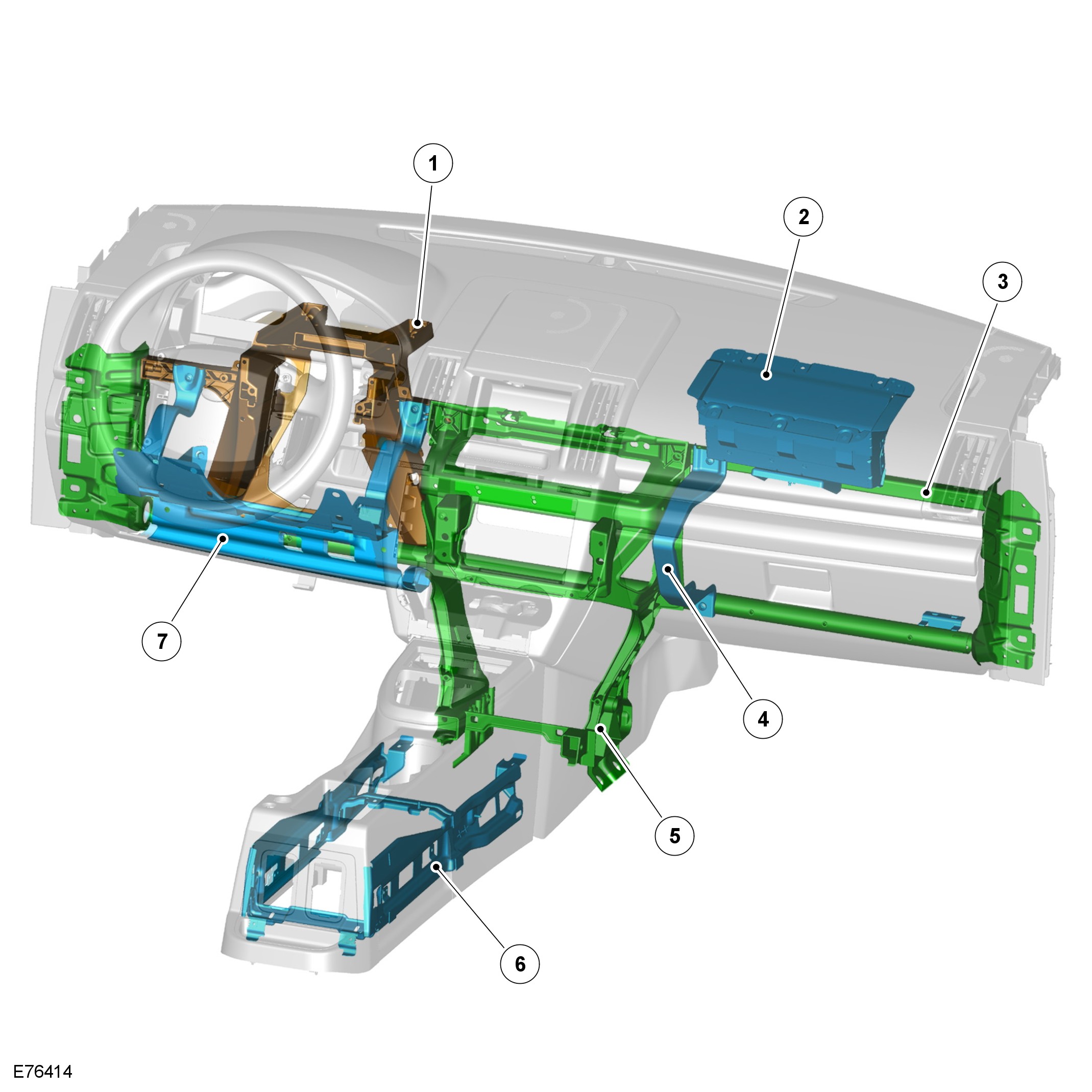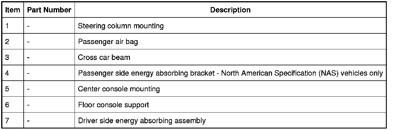 Secured to the center of the cross car beam is a cast magnesium structure which provides support and mounting points for the center console. Mounted on the driver side of the cross car beam is the steering column support, which is also manufactured from magnesium. The cross car beam also provides a mounting point for the dual stage passenger air bag. For additional information, refer to Air Bag Systems Description and Operation