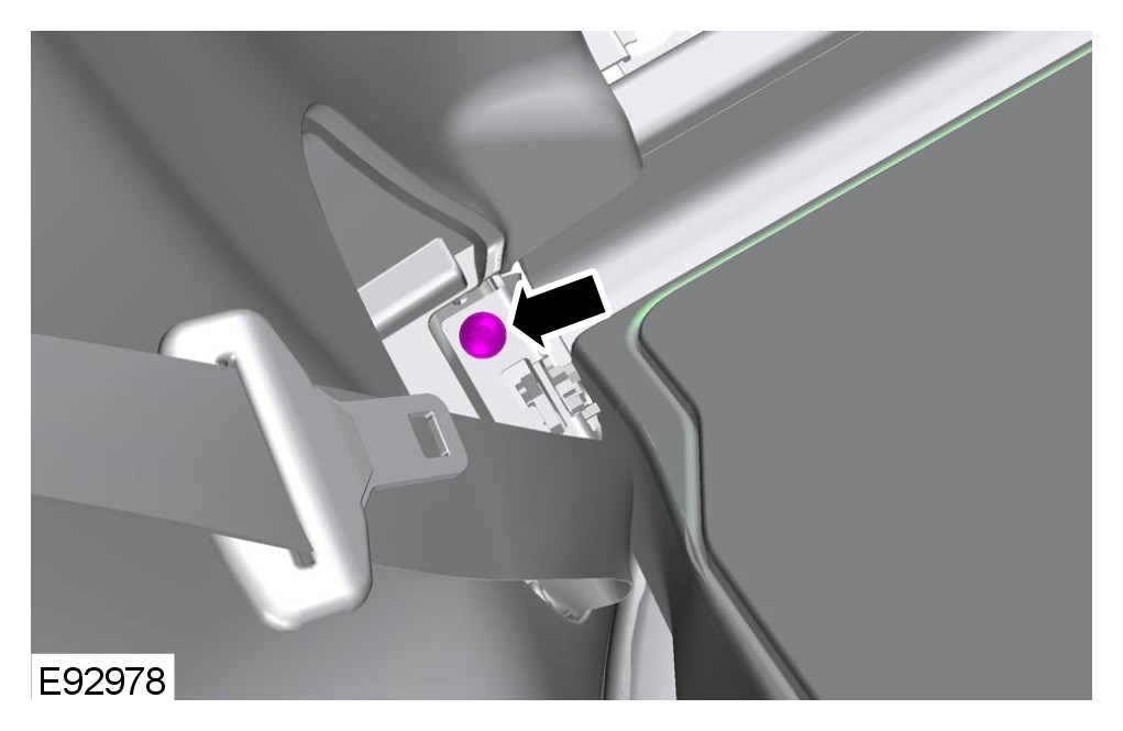 10 Remove the rear seat backrest release button trim panel.
