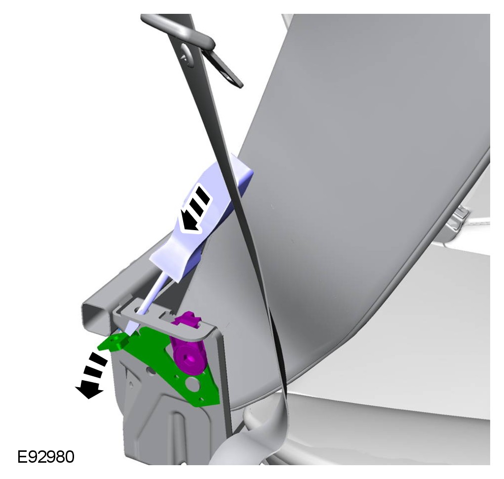 14 Remove the safety belt webbing retainer.