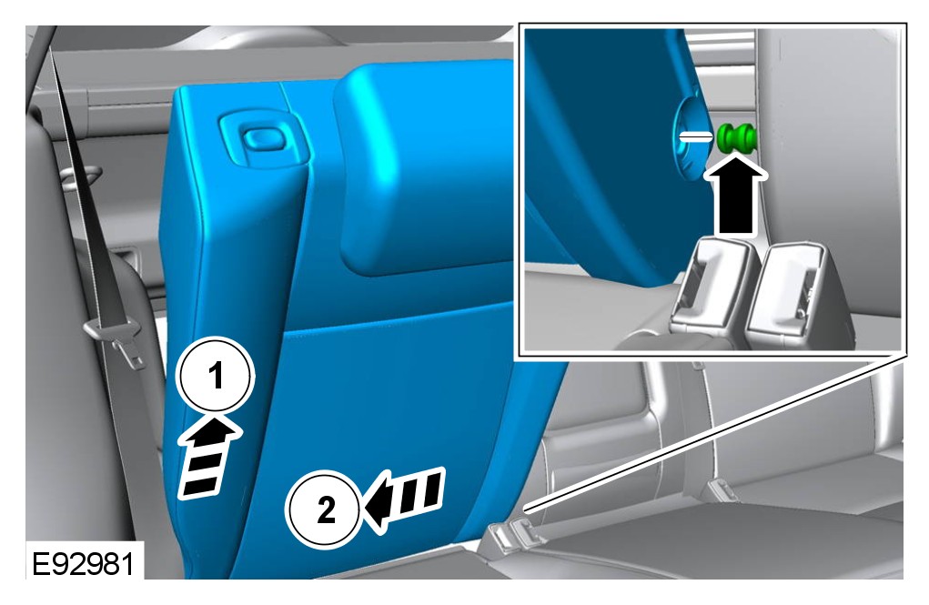 This procedure covers the removal and installation of both rear seat backrests and the LH rear seat backrest cover. The RH rear seat backrest cover is similar. All notes and cautions must be followed strictly to avoid any chance of NVH or failure of the rear seat backrests.
