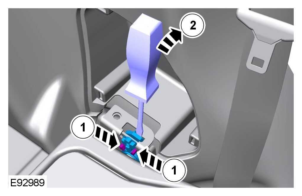 13 Release the rear center safety belt and lower anchor from the backrest cover.