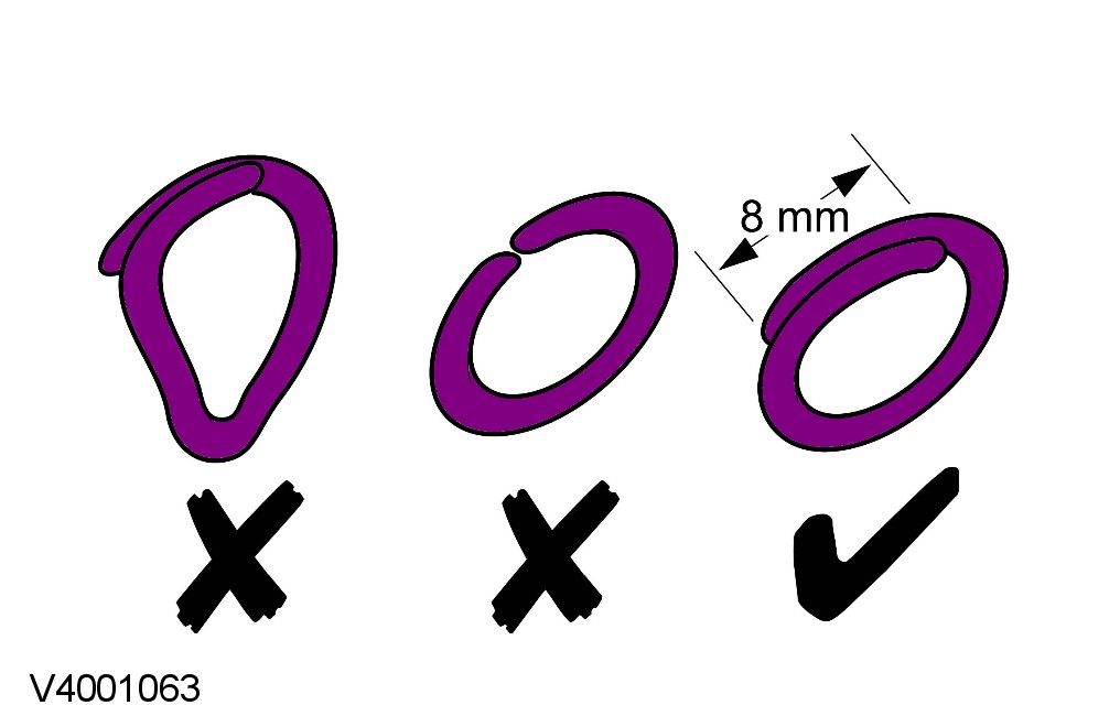 Use hog ring pliers to close the hog rings. Do not use any other tool. The hog rings must be closed to overlap as illustrated.