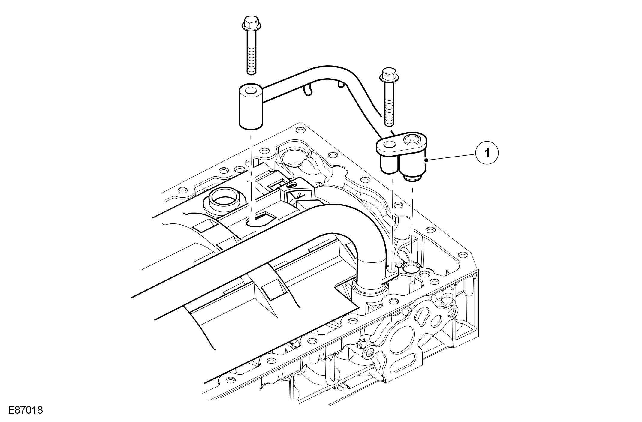 Oil is routed from the cylinder block through a front and rear duct to the cylinder head. The duct at the front edge supplies 2 circuits in the cylinder head with oil: