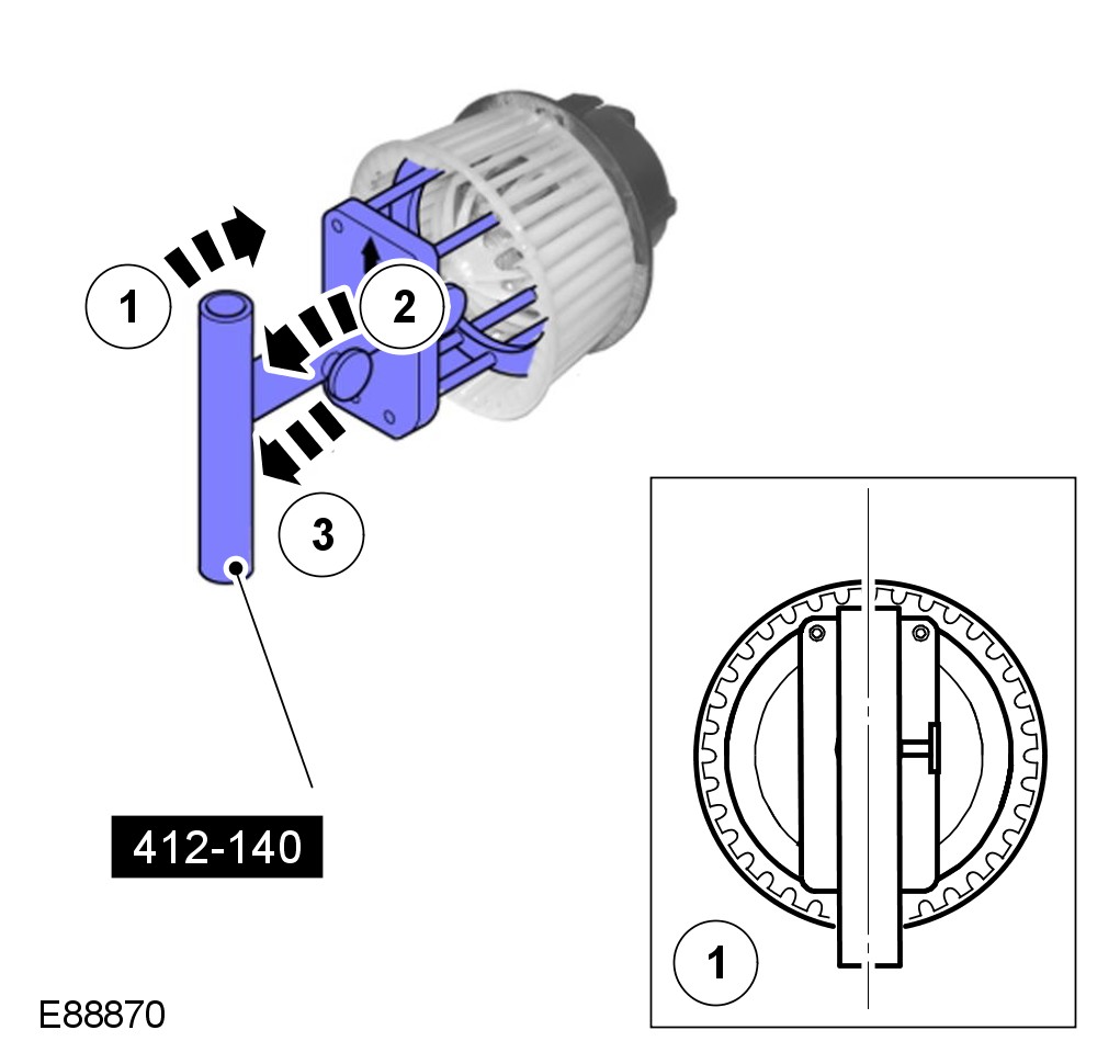 7 With the marking upwards, use the guide to install the remainder of the special tool to the blower motor.