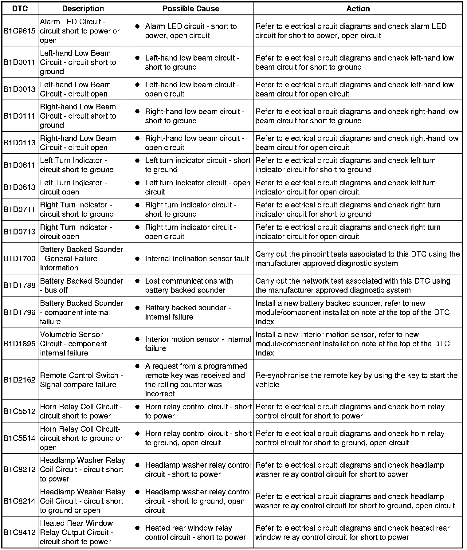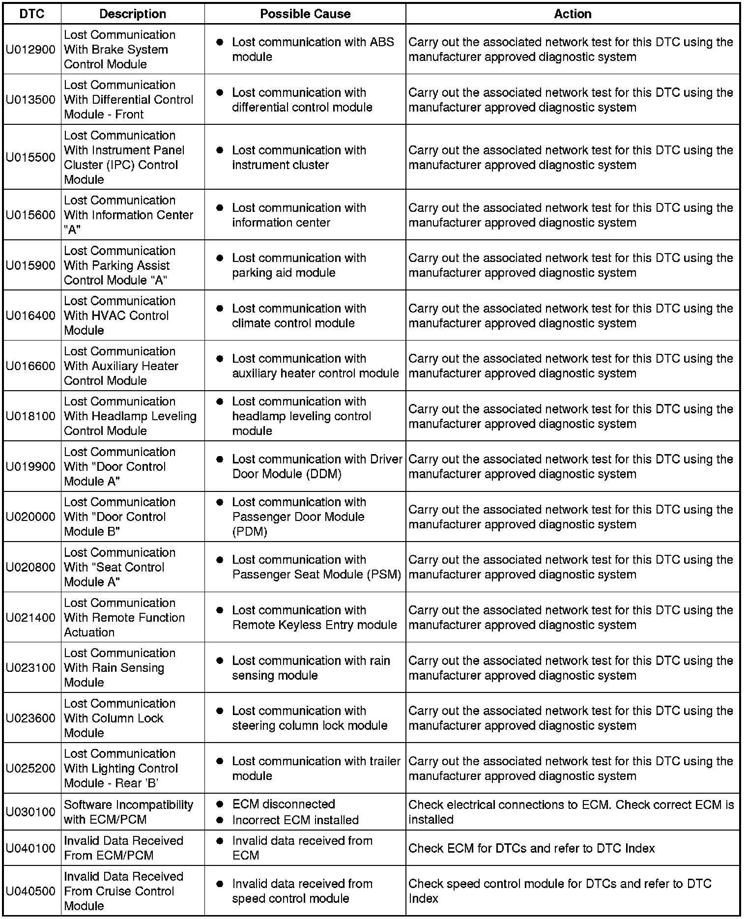 Diagnostic Trouble Code (DTC) Index