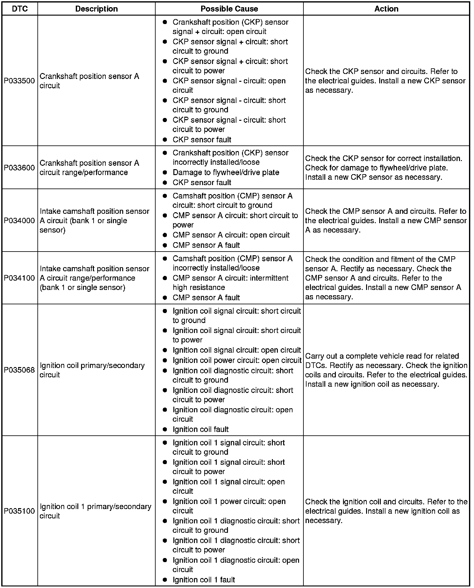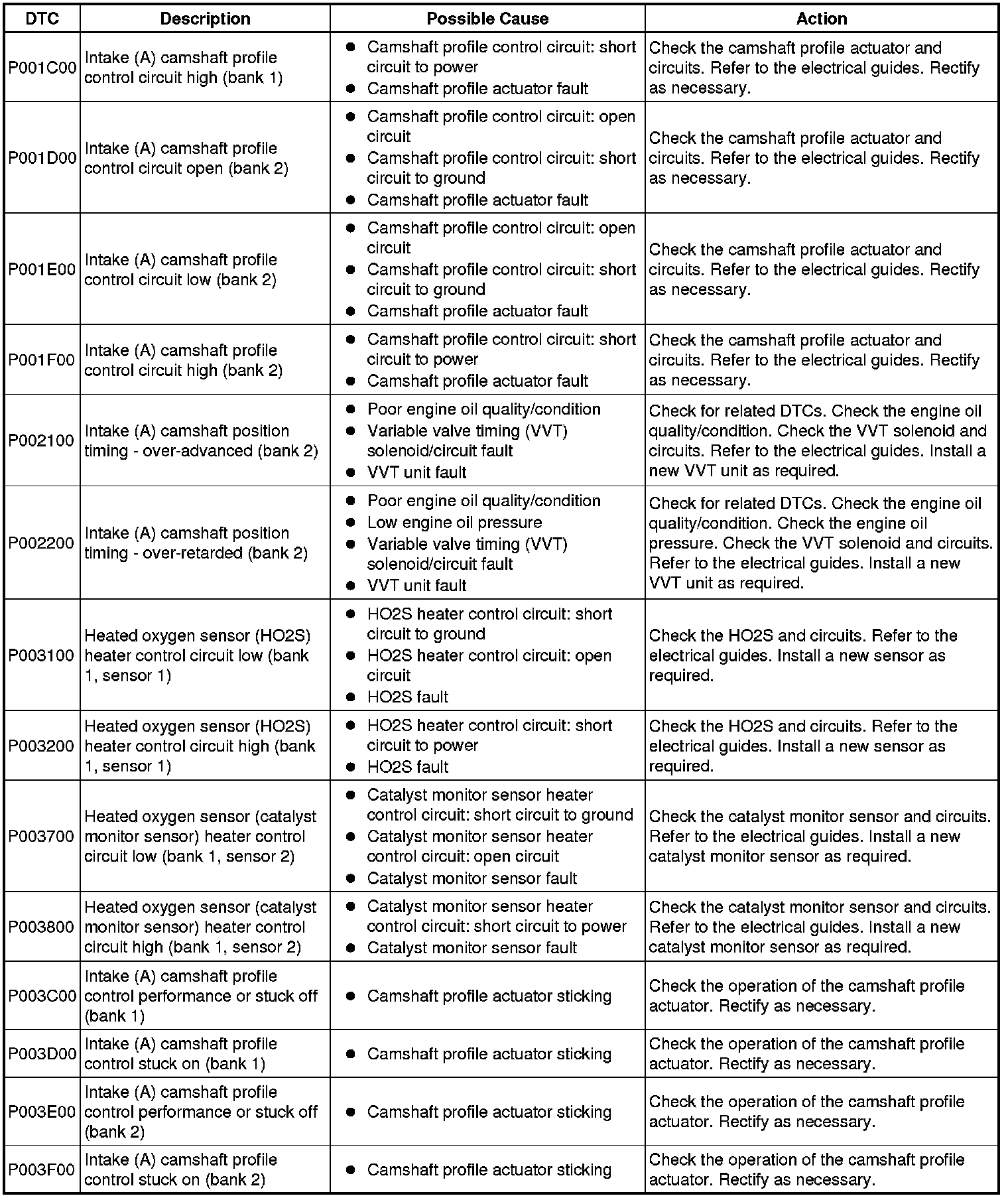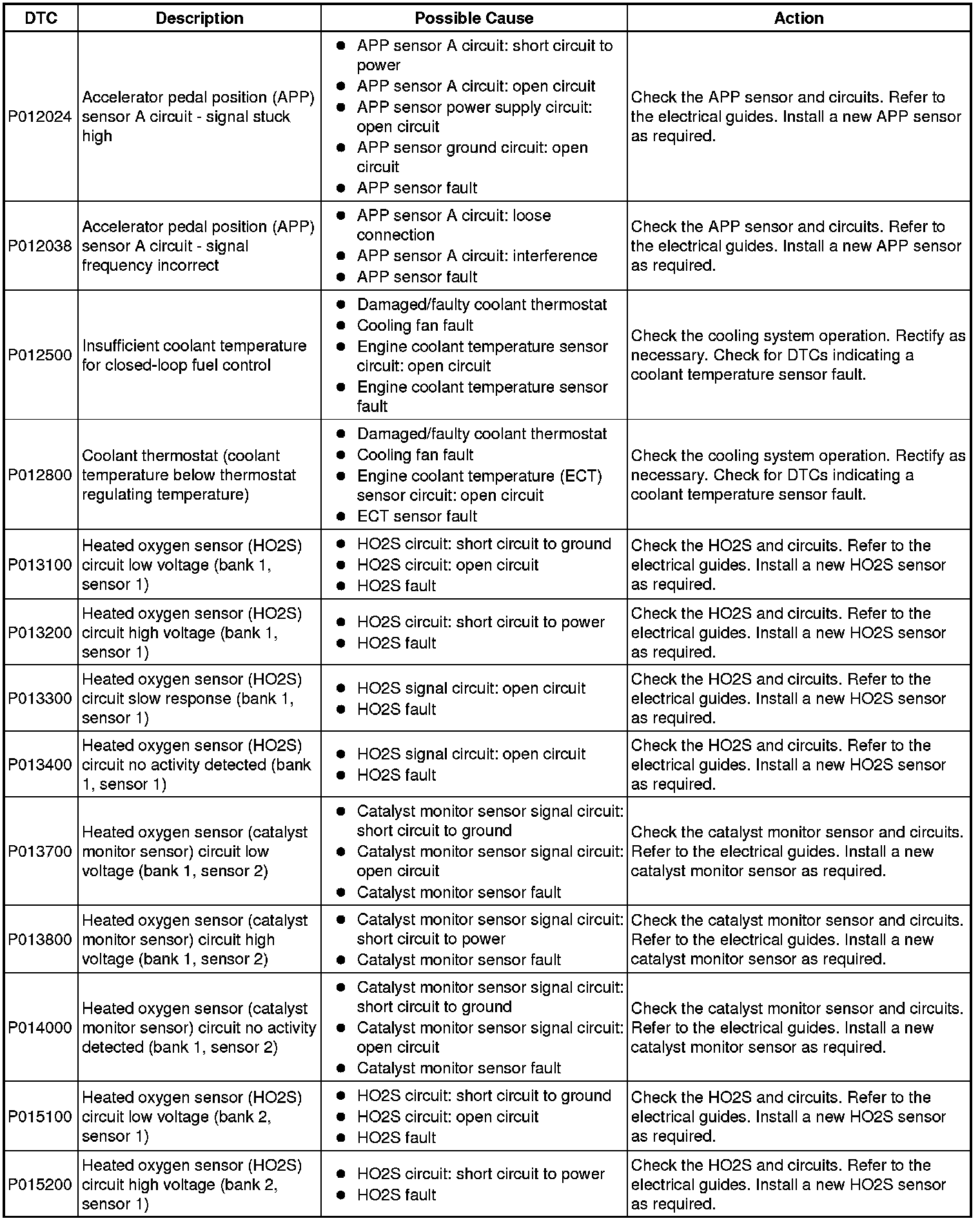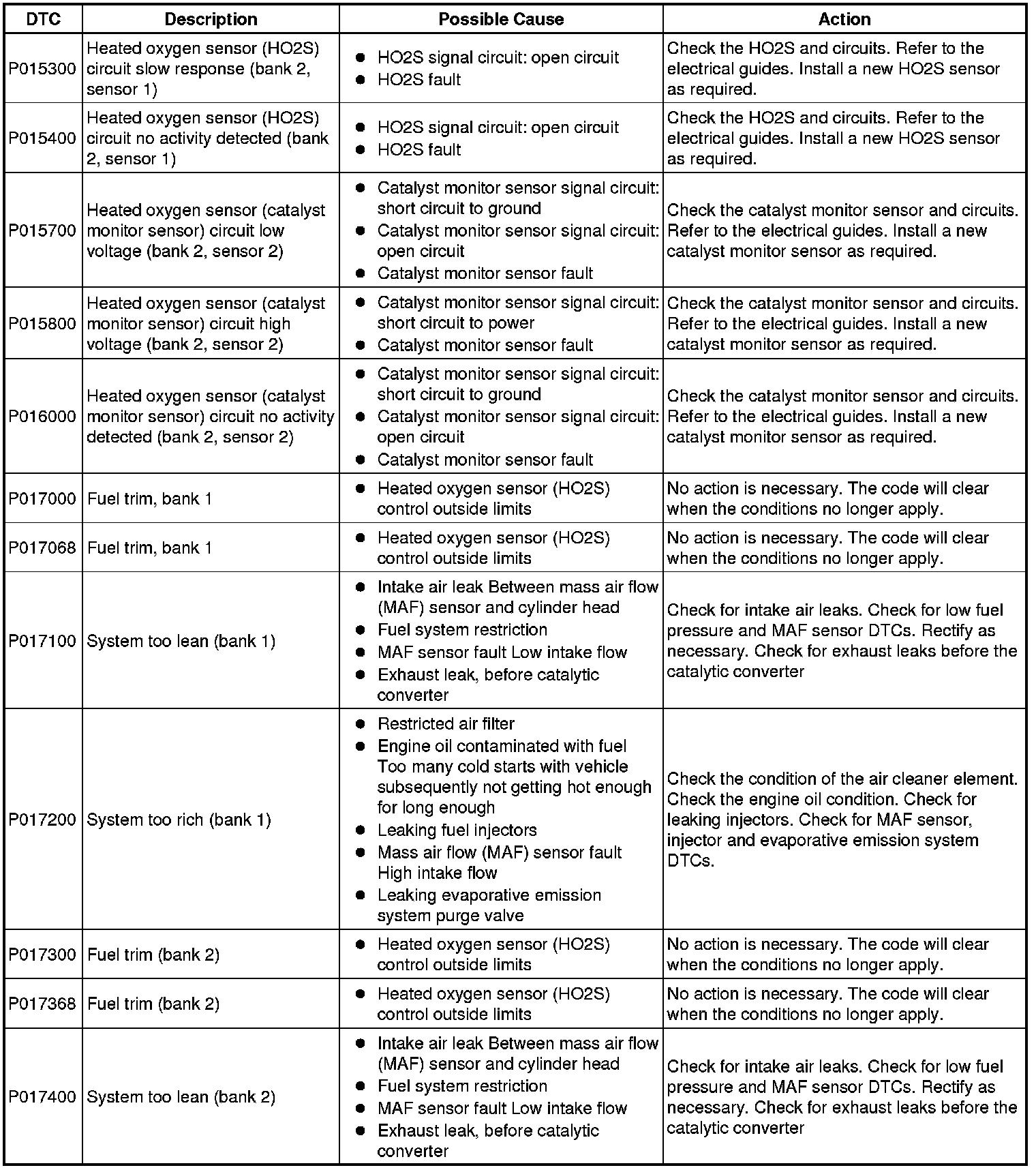Diagnostic Trouble Code Descriptions