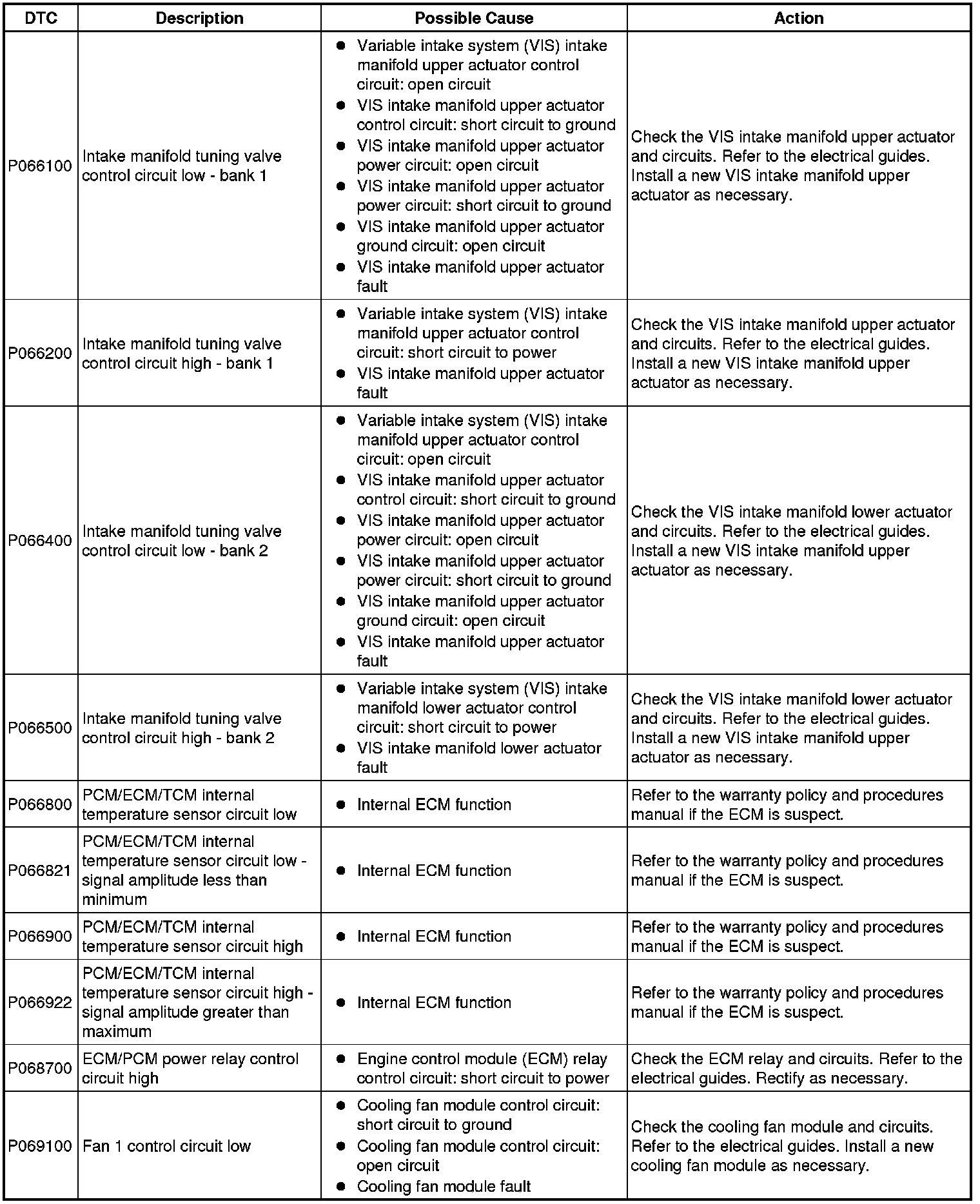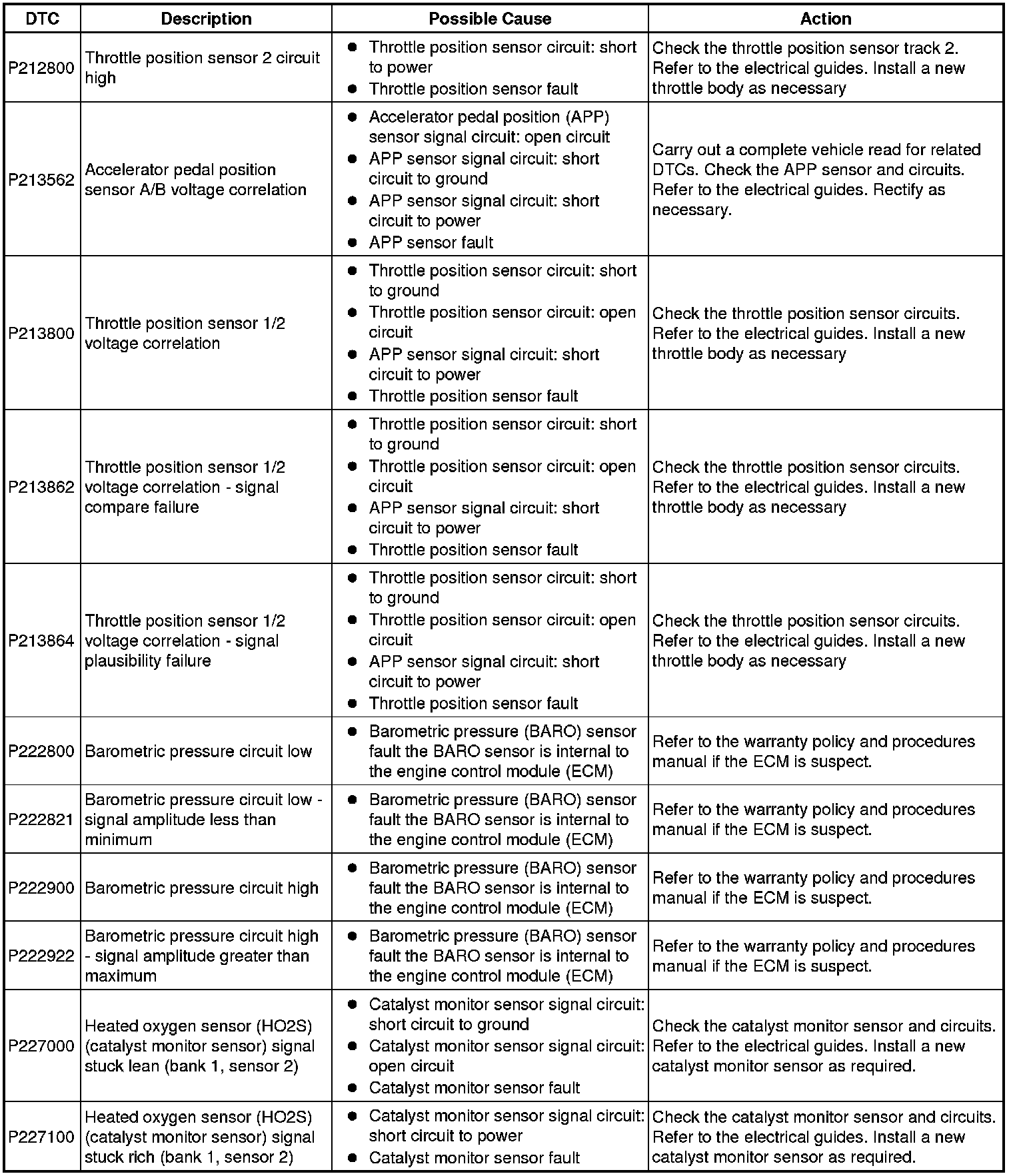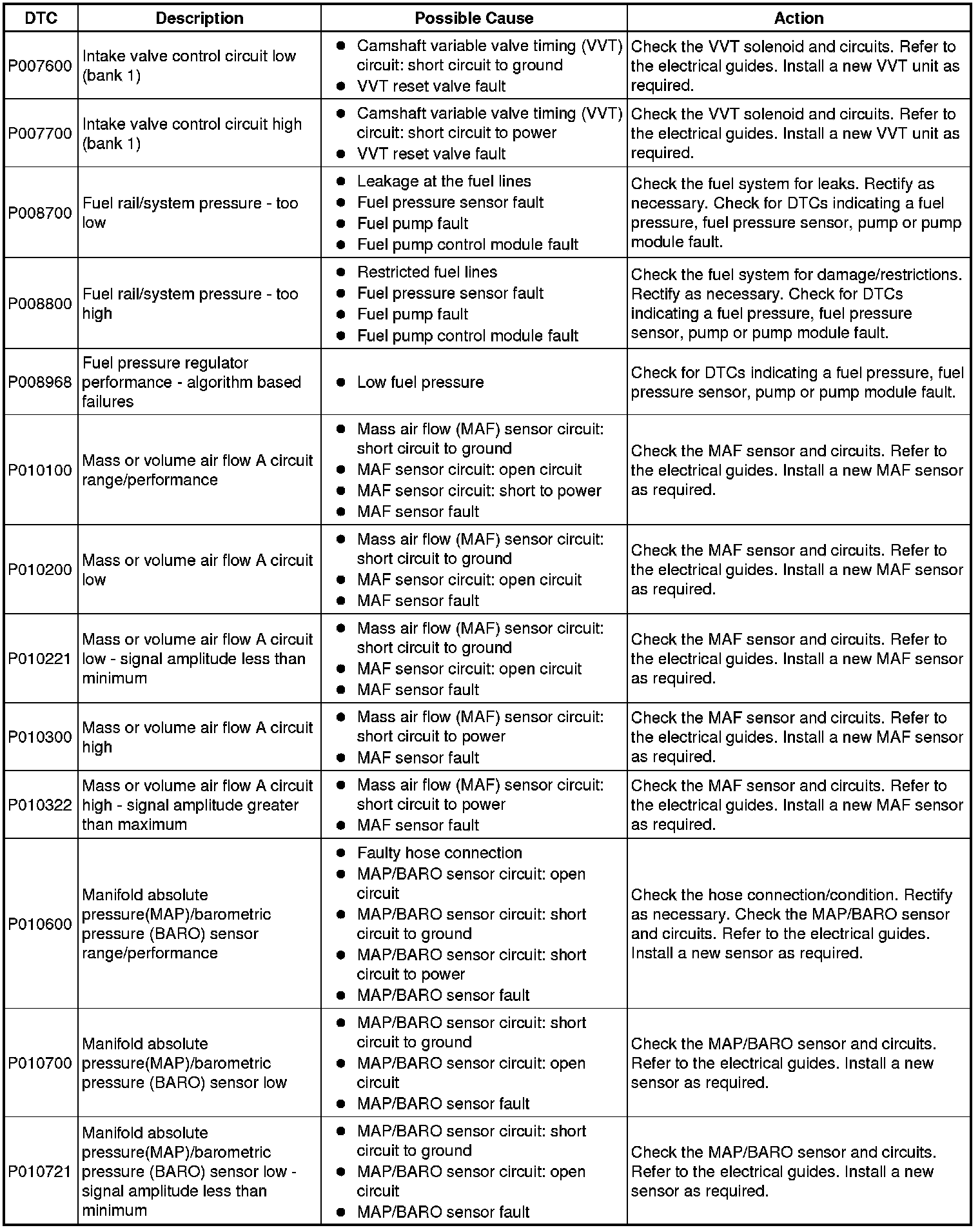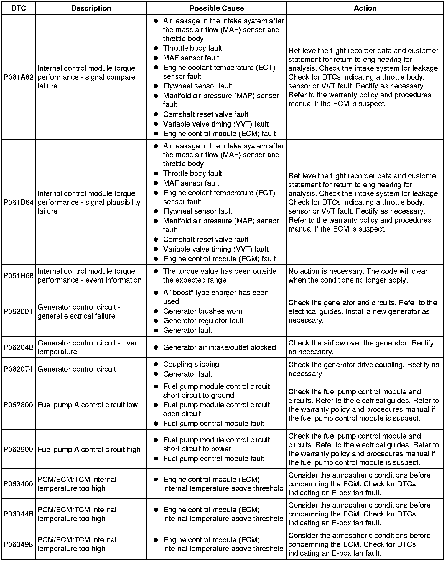 Diagnostic Trouble Code Descriptions