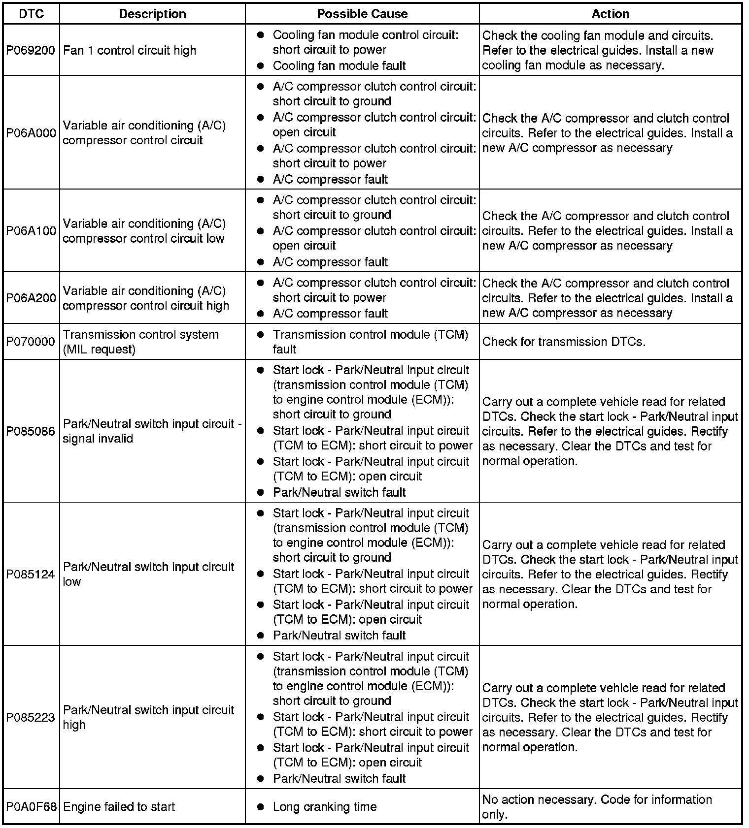 Diagnostic Trouble Code (DTC) Index