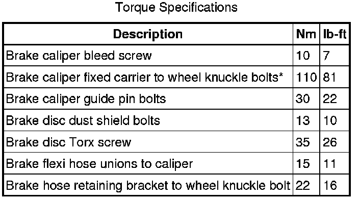 Rear Disc Brake Specifications