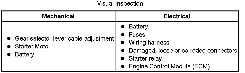 4 If the cause is not visually evident, verify the symptom and refer to the Symptom Chart, alternatively, check for Diagnostic Trouble Codes (DTCs) and refer to the DTC Index.
