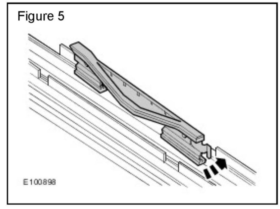 2. Using a suitable tool, slide the roof opening panel guide rearwards until the front of the guide is released. (Figure 1)