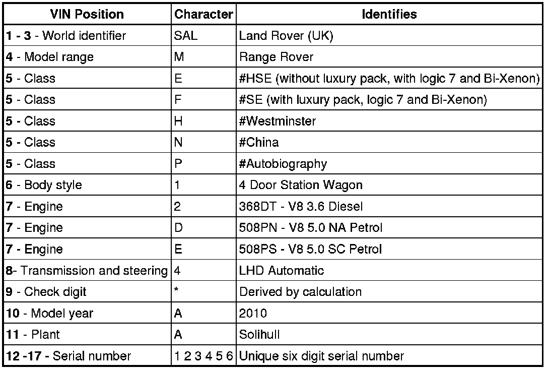 - 3. UK, Europe and ROW - Not NAS/Canada -On the VIN plate attached to the LH inner wing, forward of the suspension turret.