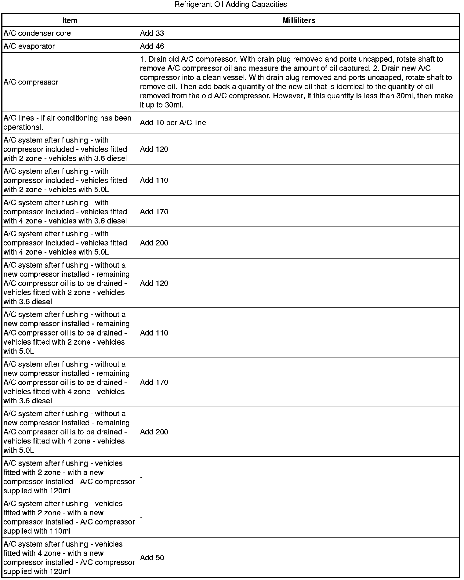 Rotate the A/C compressor shaft at least 6 to 8 turns when draining the