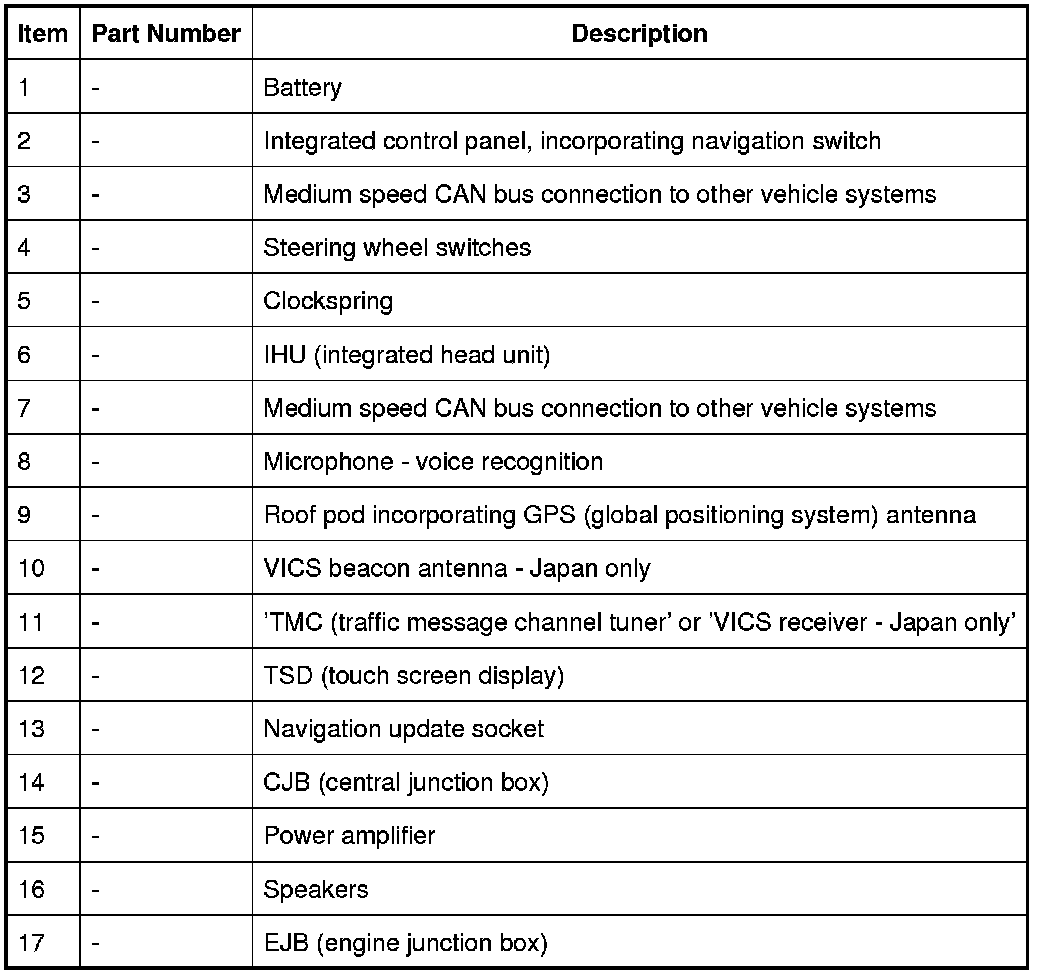 When the vehicle is in one of these conditions the vehicle's position is maintained by both the gyroscope sensor contained in the TSD and the vehicle speed signal. The speed signal is supplied by the ABS module and transmitted via the high-speed CAN to the CJB it is then transmitted by a hard-wired signal to the TSD.