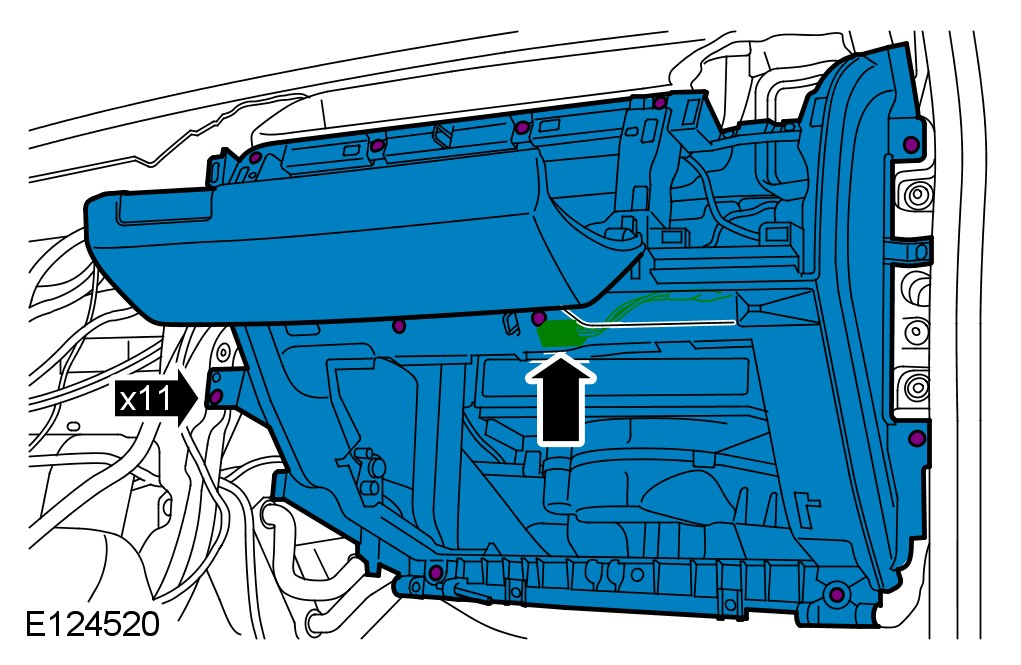 3 Remove the glove compartment. For additional information, refer to Glove Compartment Service and Repair