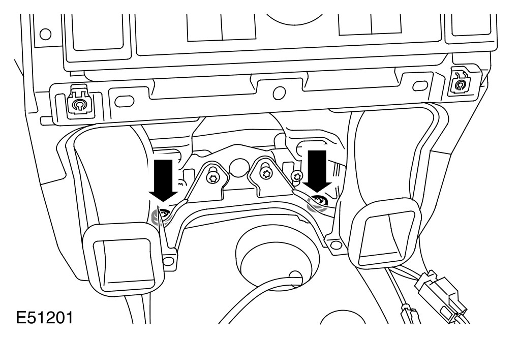 20 Install the instrument panel center bracket Torx bolts and tighten to 25 Nm (18 lb.ft).