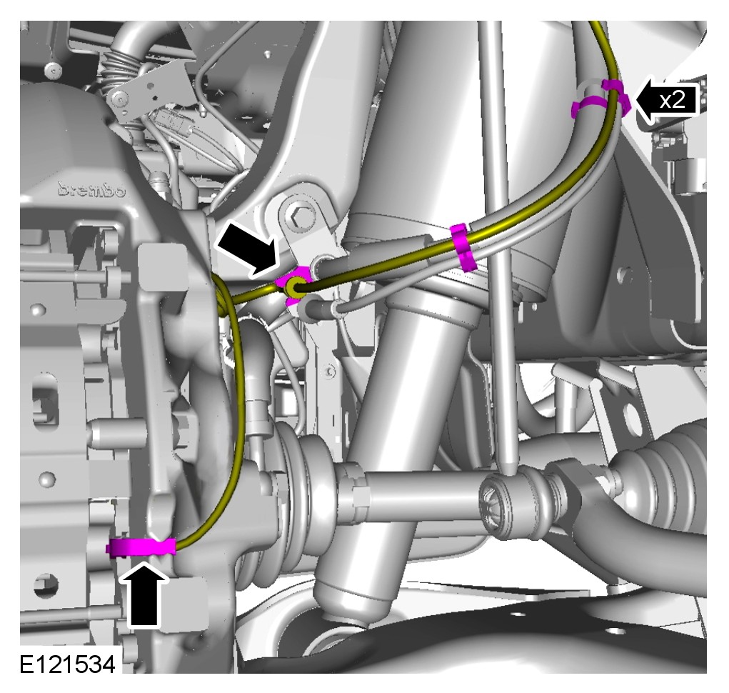 Remove the front LH splash shield. For additional information, refer to Fender Splash Shield Fender Splash Shield