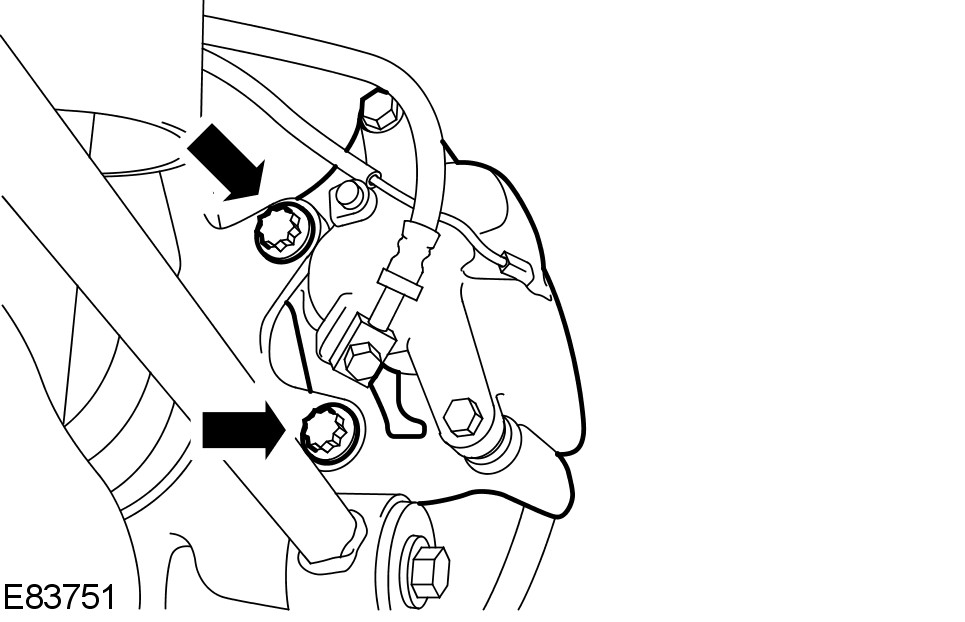 CAUTION: Do not allow the brake caliper to hang on the brake hose.