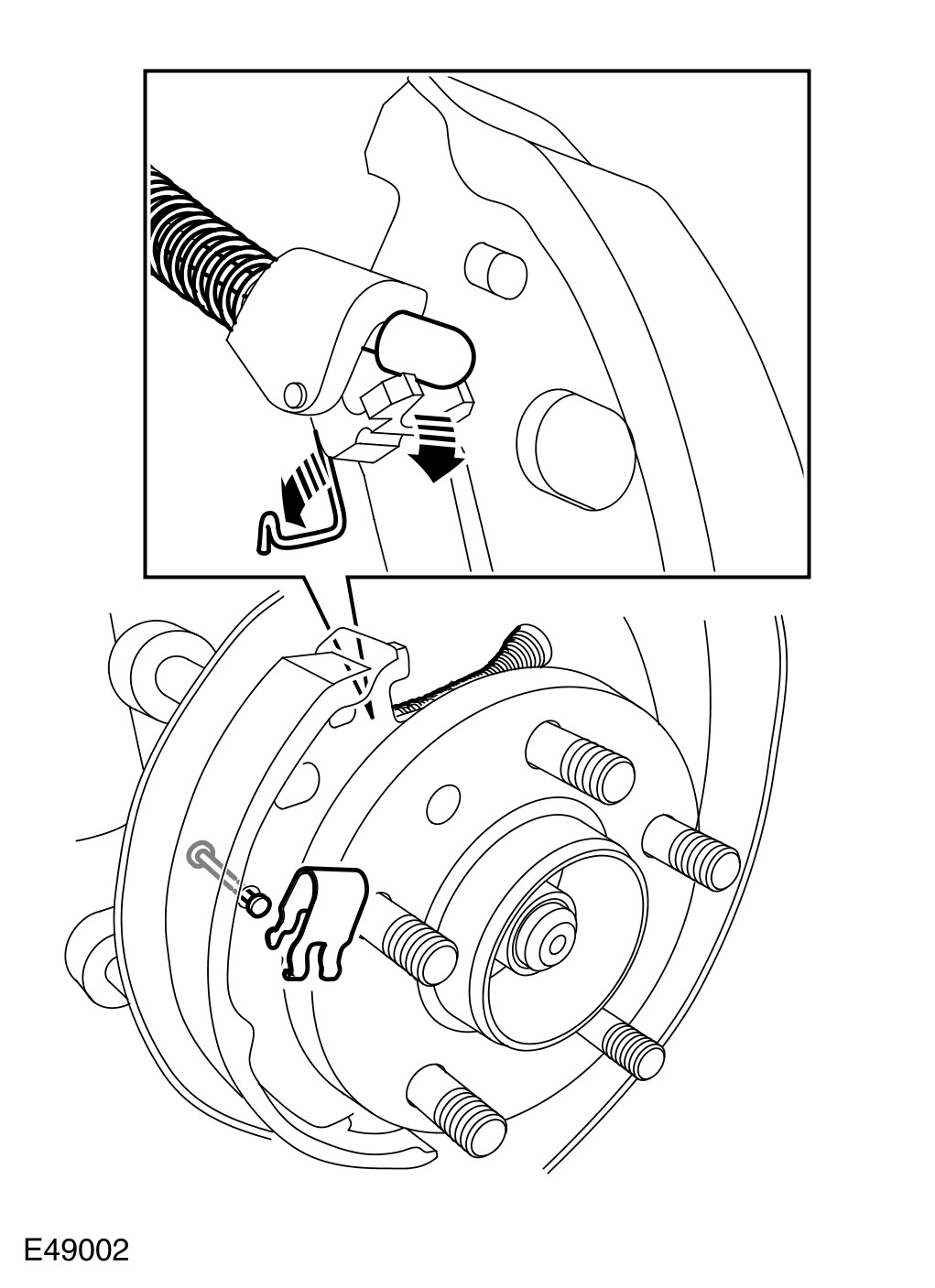 - Disconnect the parking brake cable retaining spring from the brake shoe lever.