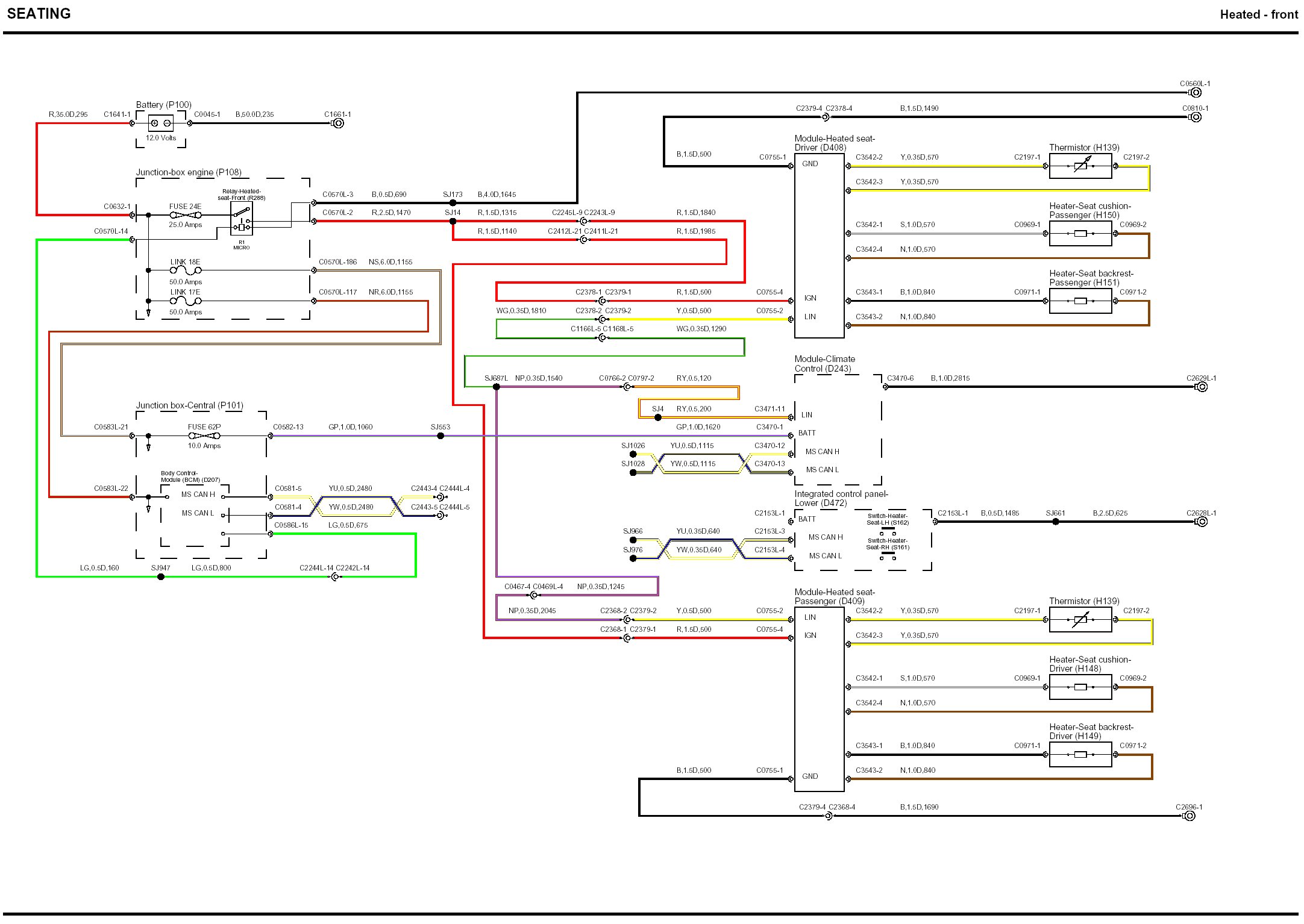 Locations: The location views for connectors and components depicted within these diagrams can be found via the connector's base number (i.e. C0570) at Vehicle/Locations/Connectors. Locations