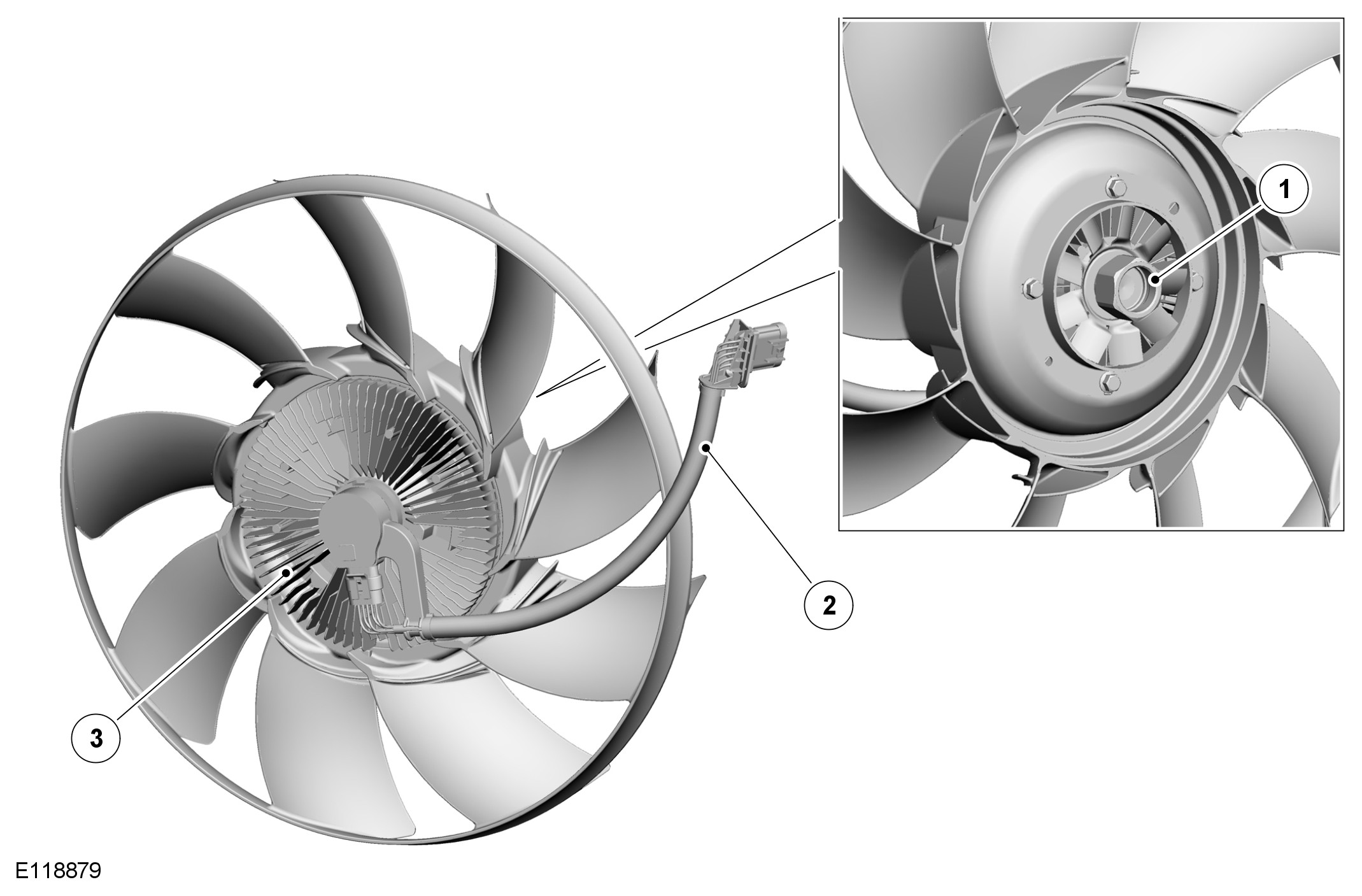 For additional airflow through the radiator, particularly when the vehicle is stationary or moving slowly, there is an engine driven electro-viscous cooling fan. The cooling fan functions as a normal viscous fan, but with electronic control over the level of engagement of the viscous clutch. The ECM (engine control module) controls the level of engagement to optimize fan speed for all operating conditions.