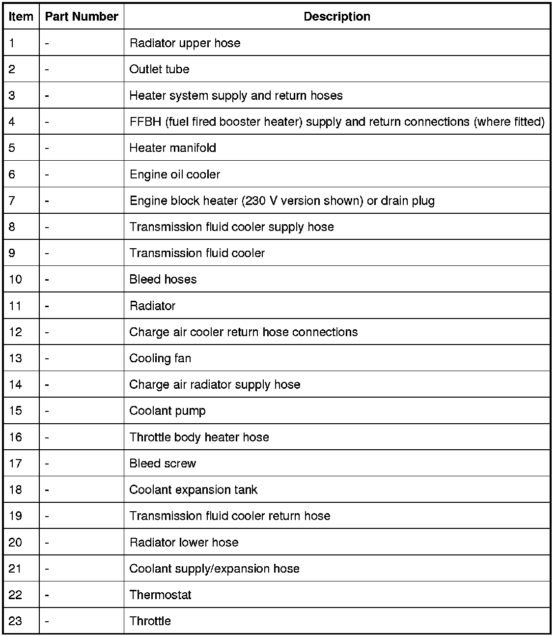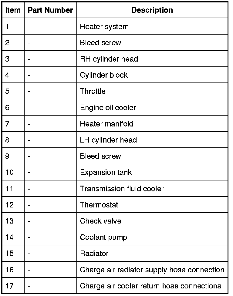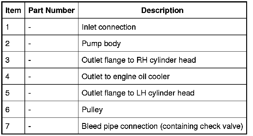 When the engine is running, the coolant is circulated around the engine cooling system by the coolant pump. From the coolant pump, coolant flows through the cylinder heads and the engine oil cooler into the cylinder block and the heater manifold.
