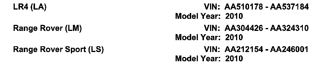 AFFECTED VEHICLE RANGE: